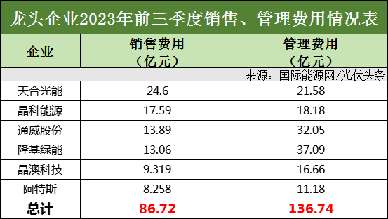晶澳科技擁有出色的成本控制能力。晶澳科技前三季度出貨排名第四,其銷售費(fèi)用與管理費(fèi)用則明顯低于天合、晶科、通威、隆基,僅略高于阿特斯。