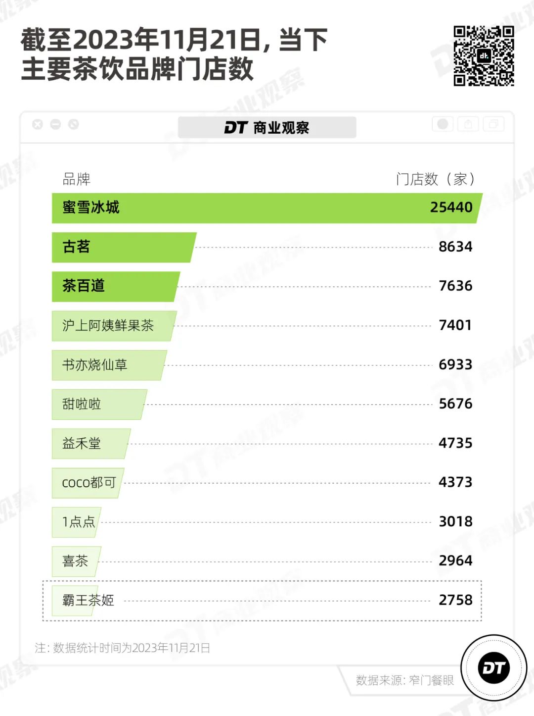 而縱觀整個(gè)新茶飲賽道,從門店規(guī)模來看,霸王茶姬的全國門店數(shù),目前尚未排進(jìn)茶飲賽道的前十。
