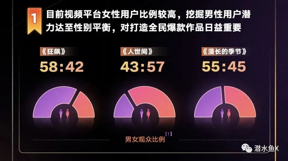 另一個洞察是,幾年前男女頻不融合的根本原因已經(jīng)被悄悄解決。《斗破蒼穹》和《將夜》這批男頻劇播出時,男觀眾沒有進入劇集的流量池,所以男頻改編總要面對男女不兼容的問題,而在一些全民精品劇如《人世間》《狂飆》《漫長的季節(jié)》出現(xiàn)之后,男性觀眾也滑向了這個池子,再消化一些IP順利成章。