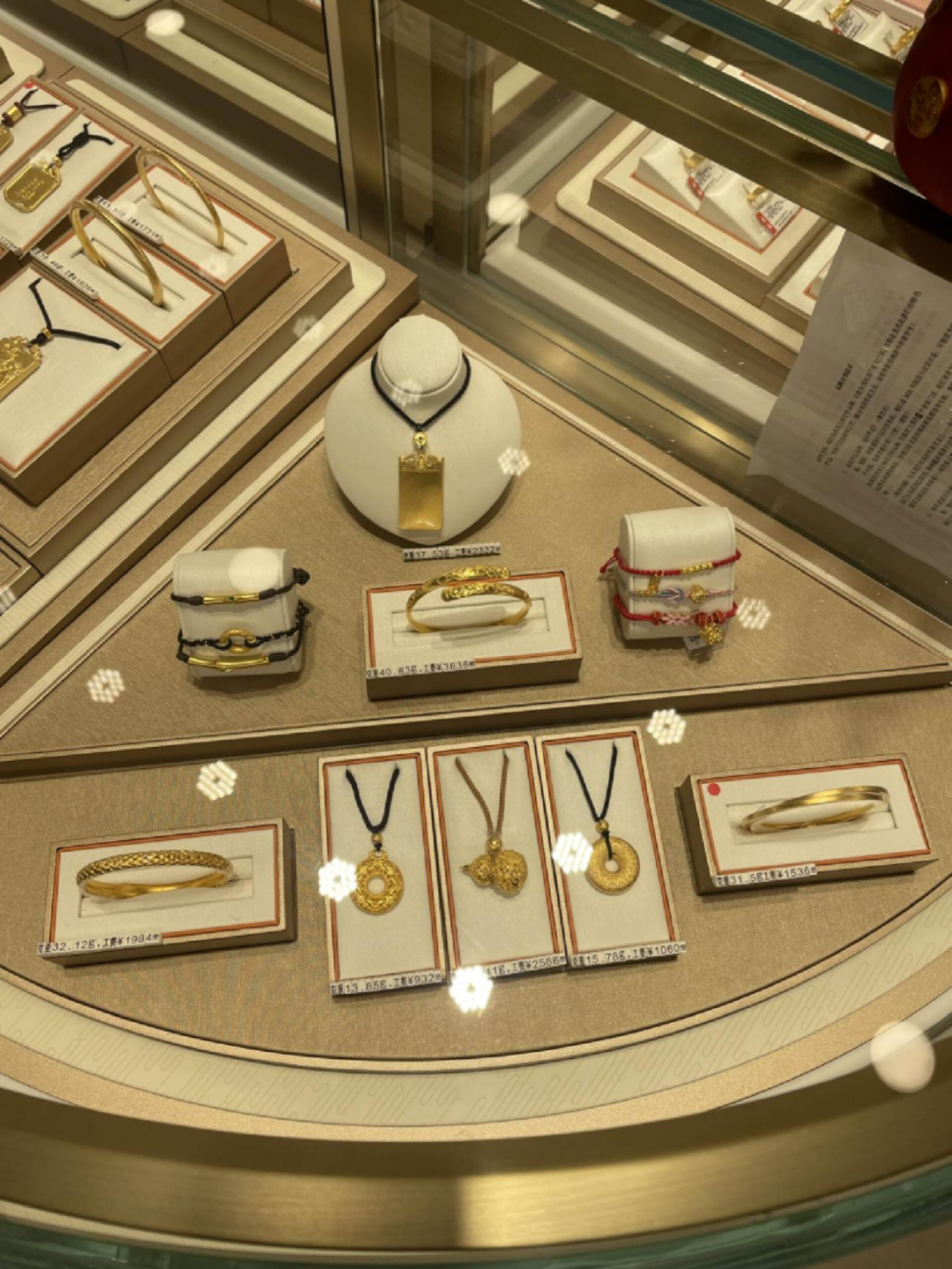 門店內(nèi)展示的新款金飾。圖源:作者拍攝
