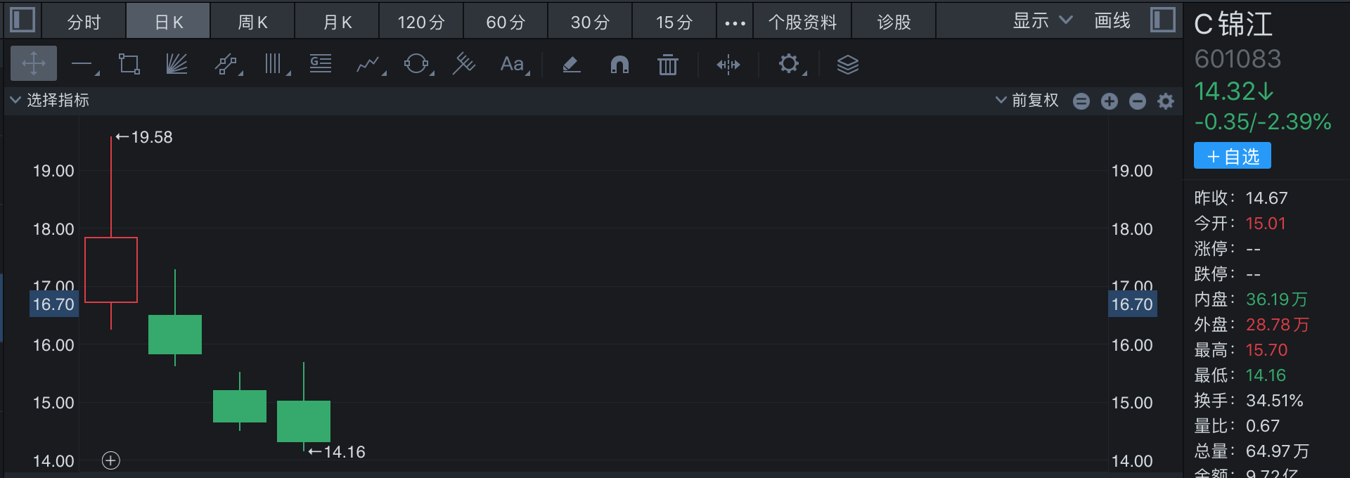 根據(jù)同花順的統(tǒng)計(jì),上周12月5日上市的錦江航運(yùn)(601083.SH),打新收益不算高,為4165元。這或許因?yàn)樵摴旧硖巶鹘y(tǒng)行業(yè)。據(jù)悉,錦江航運(yùn)從事國(guó)際,國(guó)內(nèi)海上集裝箱運(yùn)輸業(yè)務(wù),為上海國(guó)資委旗下,總運(yùn)力中國(guó)大陸集裝箱班輪公司前六,中國(guó)上海-日本航線、上海兩岸間航線市占率行業(yè)第一。其2023年前三季度的營(yíng)業(yè)收入為39.56億元,同比下滑了23.33%,凈利潤(rùn)6.98億元,同比下滑52.95%。從盤面看,錦江航運(yùn)首日最高漲幅超過(guò)了70%,發(fā)行價(jià)格11.25元,最高價(jià)19.58元。不過(guò)首日過(guò)后,股價(jià)下跌,承接的多頭意愿并不強(qiáng)烈,截至上周五(12月8日)收盤價(jià)格為14.32元。