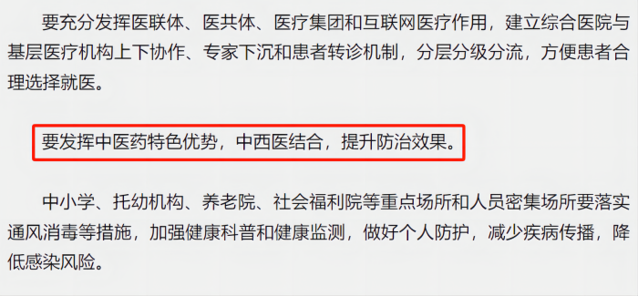 發(fā)布會(huì)上提到:“要發(fā)揮中醫(yī)藥特色優(yōu)勢(shì),中西醫(yī)結(jié)合,提升防治效果”。