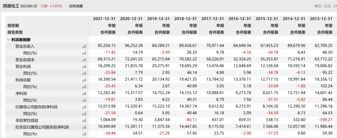 事實(shí)上,早在2013年,同德化工已經(jīng)實(shí)現(xiàn)了8.27億元的收入,和1.46億元的凈利潤。但今年截至前三季度,公司收入7.32億元,凈利潤1.52億元,業(yè)績水平與十年前相比并沒有明顯的提升。