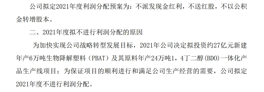 為拔高公司上限,同德化工決定進(jìn)入可降解塑料行業(yè),并于2021年上馬了年產(chǎn)6萬噸PBAT(可降解塑料的一種,應(yīng)用于食品包裝等領(lǐng)域)項(xiàng)目和年產(chǎn)24萬噸BDO(丁二醇,PBAT上游原料的一種)項(xiàng)目,兩個(gè)項(xiàng)目總投資預(yù)計(jì)約27億元。