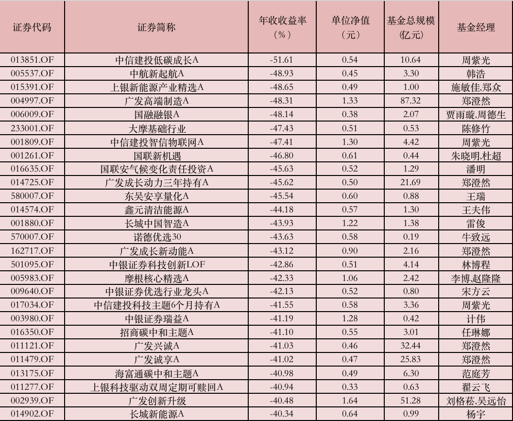 業(yè)績墊底的是中信建投低碳成長,年內(nèi)虧超50%?;鸺緢箫@示,重倉了光伏、能源金屬。近兩年,該基金業(yè)績經(jīng)歷了大起大落。2022年,該基金AC類份額收益率均超10%,收益排名居前。