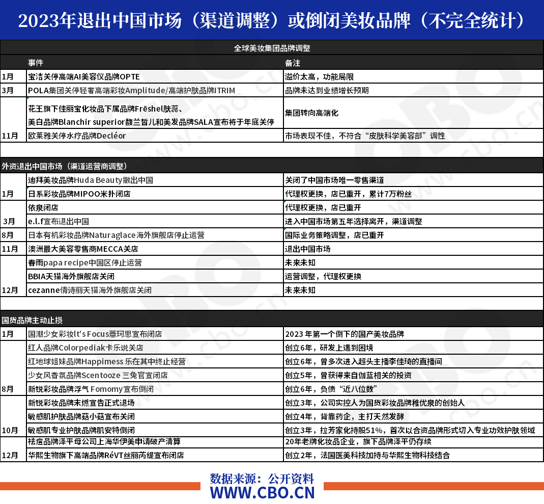 在經(jīng)濟降速的大背景下,用戶的消費行為也開始更加理性,再風(fēng)靡一時的美妝品牌,也要面臨新一輪考驗。據(jù)CBO不完全統(tǒng)計,超20+品牌在今年迎來重大渠道戰(zhàn)略調(diào)整,或退出中國市場,或永久關(guān)停。