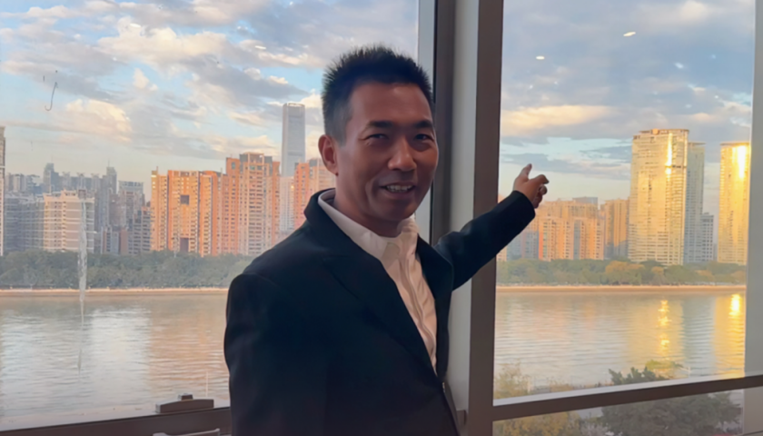 韓后辦公室觀景臺(tái)可看到廣州地標(biāo)“小蠻腰”。攝影:鄧雙琳