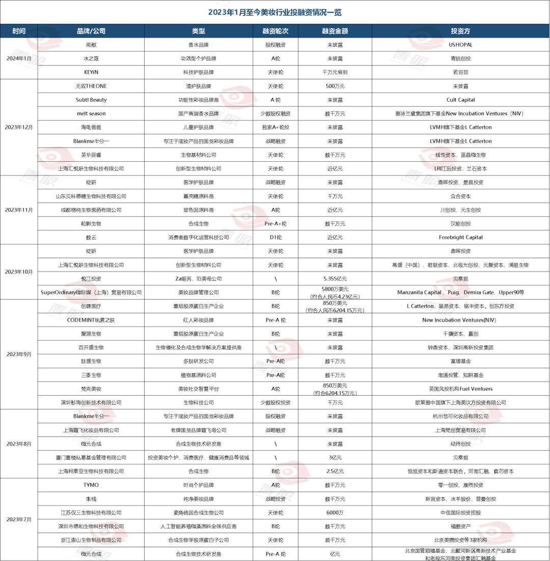 2024年剛剛開始,化妝品行業(yè)就發(fā)生多起投融資事件。