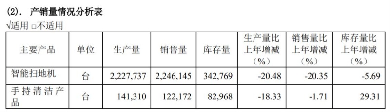 在產(chǎn)銷量方面,2022年度石頭科技的智能掃地機(jī)銷售量為224.61萬臺(tái),銷量比上年減少20.35%;生產(chǎn)量為222.77萬臺(tái),比上年減少20.48%;有34.28萬臺(tái)的庫存,庫存量比上年減少5.69%。