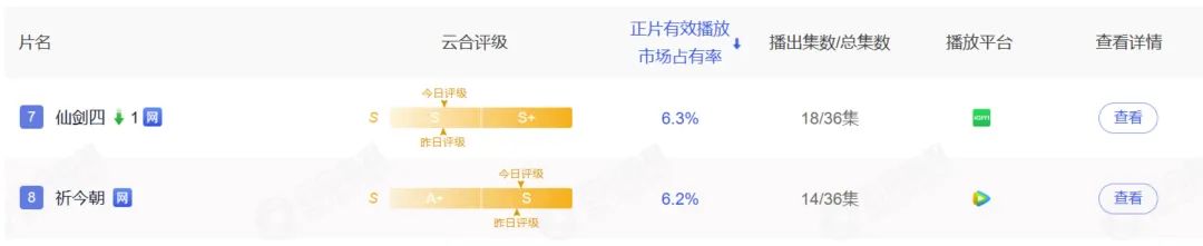 《仙劍四》和改編自《仙劍六》的《祈今朝》前后腳播出,本以為是正面對(duì)打,沒(méi)想到是齊齊啞火。云合數(shù)據(jù)顯示,兩部劇播出過(guò)半,正片播放占比都沒(méi)超過(guò)7%,分別排在第七位和第八位。