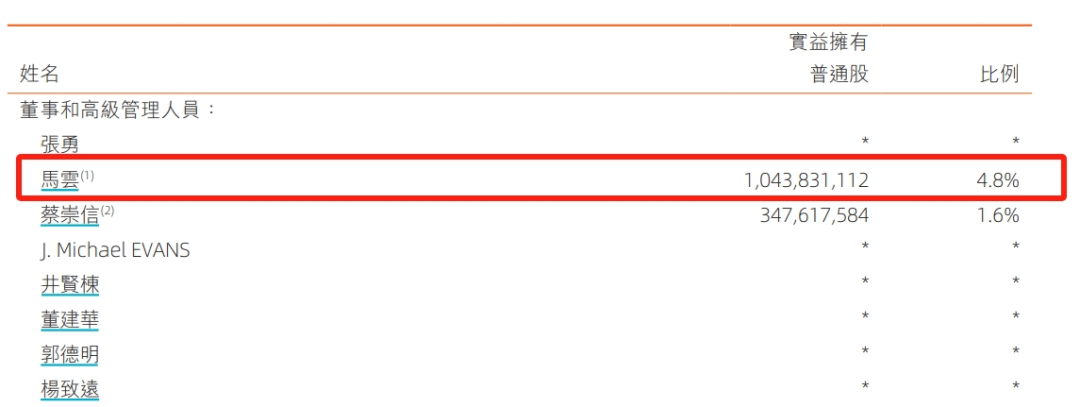 該報(bào)道還稱(chēng),馬云在此次增持5000萬(wàn)美元后,持股比例已經(jīng)高于2021年底的4.3%。這與前面提到的最后一次在財(cái)報(bào)中4.8%矛盾,而且理論上創(chuàng)始人持股比例每年都需要披露。蔡崇信此前在阿里2023年7月披露的年報(bào)中,持股比例為1.4%。