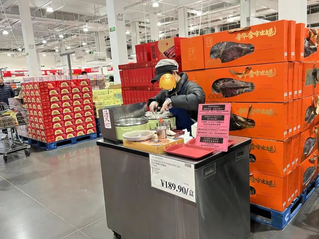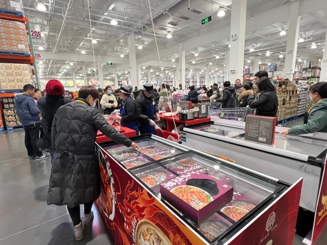 “從早上到現(xiàn)在,不到五個(gè)小時(shí),‘佛跳墻’已經(jīng)補(bǔ)了好幾次貨了,這道菜只供到小年夜……”預(yù)制菜品牌“秒宴”的促銷人員話還沒說完,一位Costco工作人員推著車走過來,比對(duì)著手中的線上訂單,拿了5盒“廣式盆菜”放入了推車中。