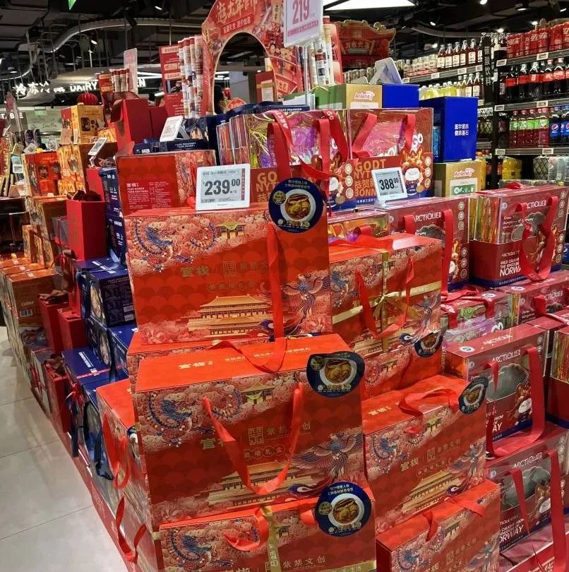 除了預(yù)制菜企業(yè)、餐飲品牌外,渠道也在春節(jié)期間上新了不少預(yù)制菜品。FBIF在1月27日探訪大潤發(fā)時(shí)發(fā)現(xiàn),大潤發(fā)自有品牌“潤發(fā)工廠”上新了多款預(yù)制菜品,其中包括東坡肘子、八寶鴨等預(yù)制菜品?!斑@些禮盒都只是在春節(jié)期間出售?!贝鬂櫚l(fā)工作人員對(duì)FBIF說。