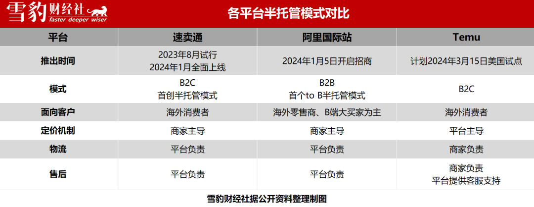 隨后阿里國際迅速跟進,推出首個跨境B2B領(lǐng)域半托管模式。據(jù)多家媒體報道,拼多多旗下Temu已確定首期半托管模式將在3月中旬推出,第一站是它當前的主戰(zhàn)場美國。