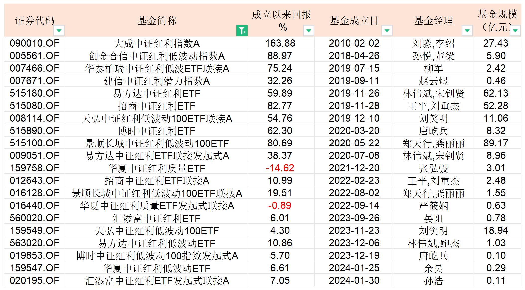 Wind數(shù)據(jù)顯示,截至2月26日,市面上共有114只名稱中含有“紅利”的公募產(chǎn)品(只計算主代碼),合計規(guī)模為1297.19億元。其中跟蹤中證紅利指數(shù)的被動指數(shù)型基金就有20只。