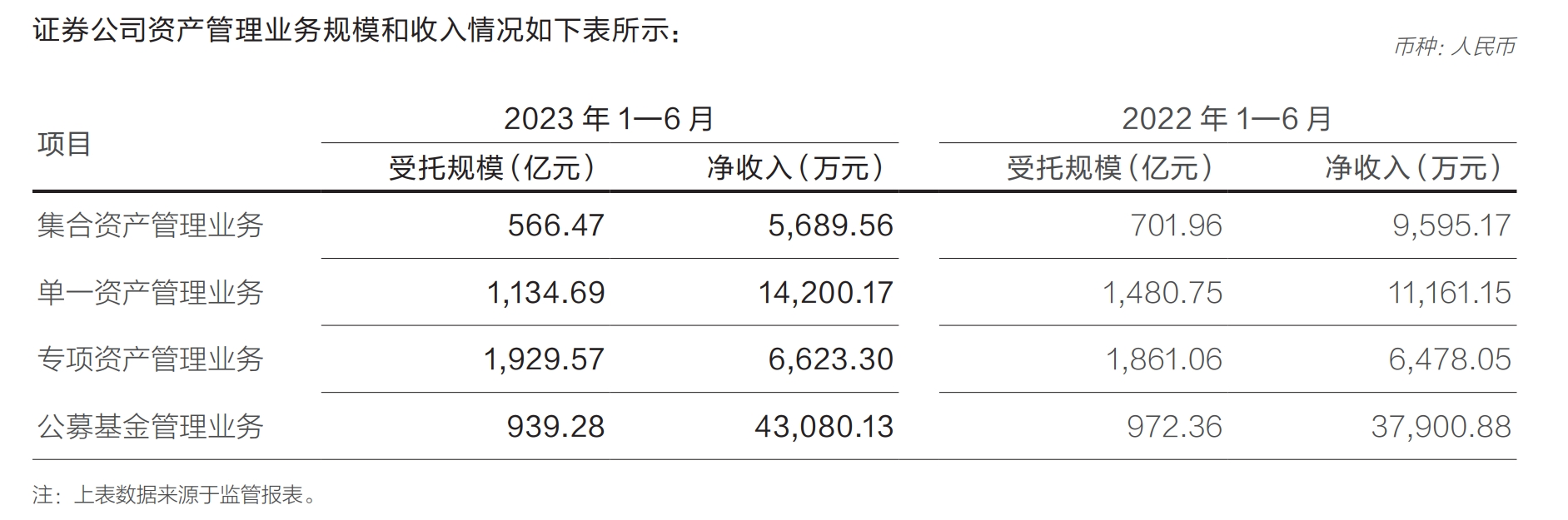 截至2023年中期,華泰資管管理規(guī)模4570億元,同比下降8.9%。其中,集合資產(chǎn)、單一資產(chǎn)和專項(xiàng)資產(chǎn)管理業(yè)務(wù)規(guī)模分別為566.47億元、1134.69億元和1929.57億元。