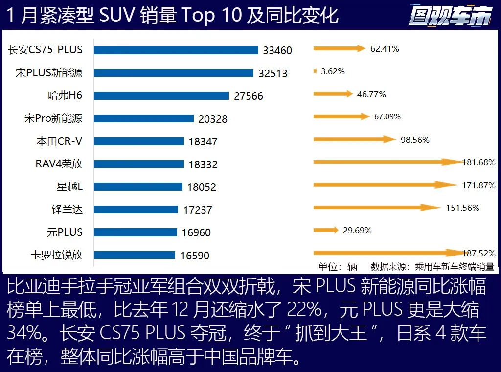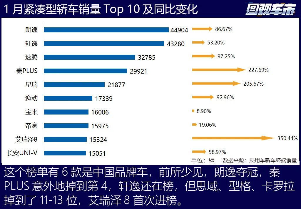 細(xì)分市場(chǎng)方面,緊湊型轎車、緊湊型SUV、中大型SUV、中型MPV的冠軍均易主,進(jìn)榜車系和排名也都有前所未有的變化,話不多說(shuō)看榜吧。