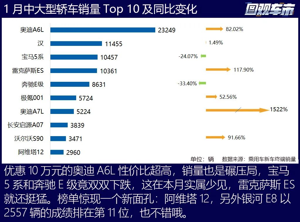 1月數(shù)據(jù)有兩個(gè)大震驚,最刺激的是老勢(shì)力們?cè)谌加蛙囶I(lǐng)域開(kāi)始大反攻了,極氪、深藍(lán)、銀河這些富二代的新能源車銷量大力沖擊新勢(shì)力;二是多個(gè)細(xì)分市場(chǎng)的競(jìng)爭(zhēng)牌面發(fā)生了劇烈的變化,太多萬(wàn)萬(wàn)沒(méi)想到,本期《圖觀車市》我們一一揭曉。