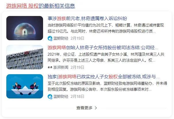 據(jù)游族網(wǎng)絡(luò)日前公告,公司已故創(chuàng)始人林奇子女林小溪、林芮璟及林漓所持游族網(wǎng)絡(luò)全部股權(quán)被凍結(jié),數(shù)量合計(jì)約5023萬(wàn)股,占總股本5.49%。