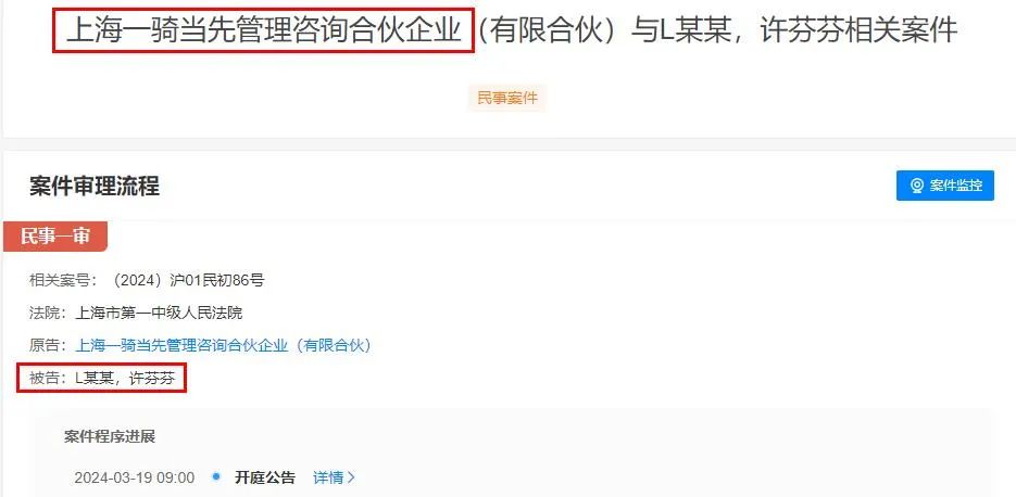 但天眼查顯示,許芬芬涉及的一樁民事訴訟定于3月19日開庭,原告為上海一騎當(dāng)先公司。而上海一騎當(dāng)先的大股東正是游族網(wǎng)絡(luò)原創(chuàng)始人之一的陳標(biāo)禮。