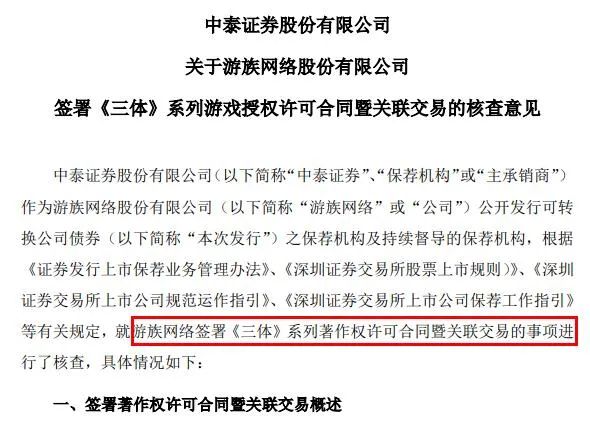 2020年6月,游族網(wǎng)絡(luò)發(fā)布公告稱,與三體宇宙(上海)文化發(fā)展公司簽署協(xié)議,得到《三體》系列小說(shuō)用于游戲開發(fā)、發(fā)行、改編以及衍生產(chǎn)品等權(quán)利。