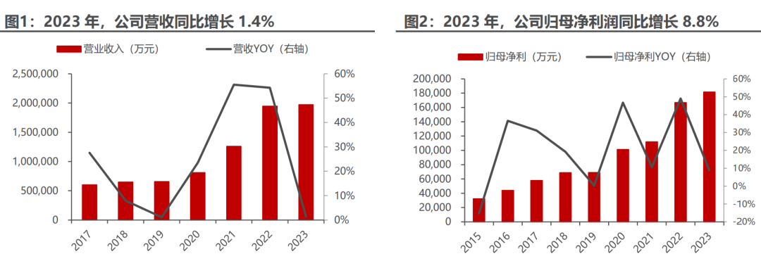 橫店東磁年報顯示,2023年公司實現(xiàn)營業(yè)收入197.21億元,同比增長1.39%,歸屬于上市公司股東的凈利潤18.16億元,同比增長8.80%,歸屬于上市公司股東的扣除非經(jīng)常性損益的凈利潤20.25億元,同比增長26.58%,基本EPS為1.13元,平均ROE為21.68%。