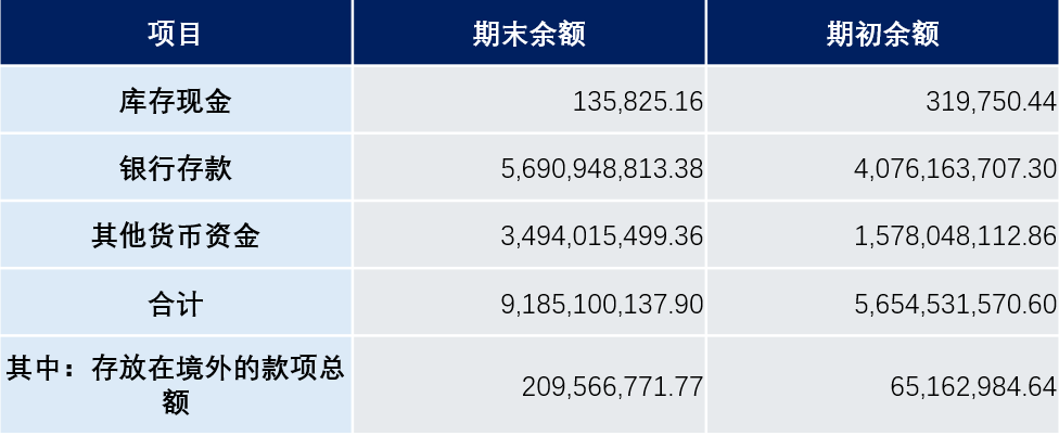 從上述表格可以看出,公司的貨幣現(xiàn)金大部分是銀行存款,高達56.9億元。