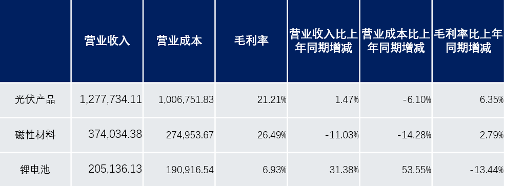 雖然公司的業(yè)務分為磁材+器件、光伏及鋰電三部分。磁材和鋰電的競爭壓力和市場空間還不及光伏。公司發(fā)展光伏產(chǎn)業(yè),也是慎重對比得出來的結論——光伏雖然越來越“卷”,但和光伏相比,起家產(chǎn)業(yè)更難干。
