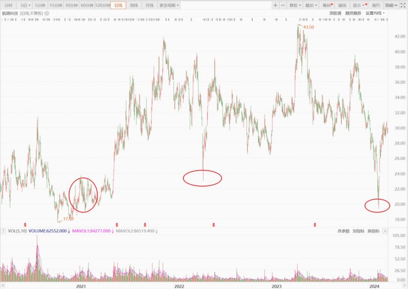 截至2023年年末,航錦科技的貨幣資金有7.16億元,高于本次回購計劃使用的資金總額上限4億元。不過,自從2月初董事會審議通過回購議案之后,航錦科技的股價從最低點19.28元/股已經(jīng)上漲到30元/股附近。