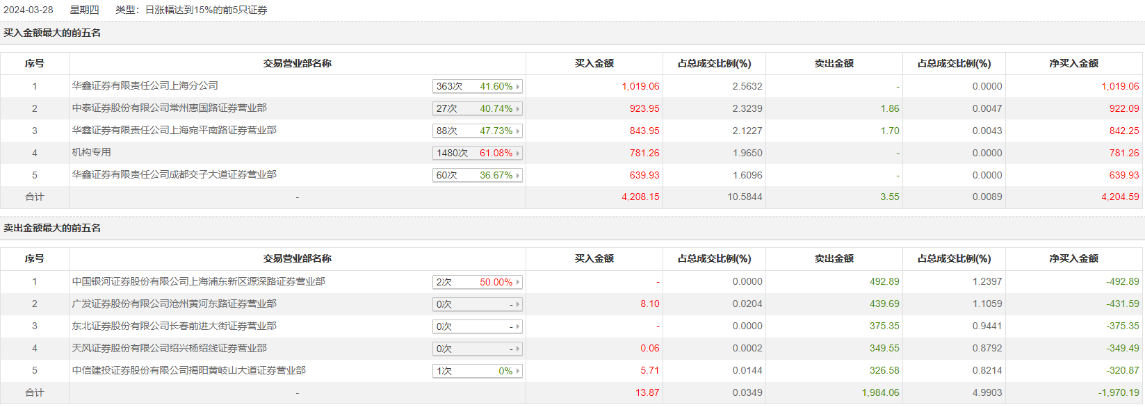 目前,知名游資對建新股份態(tài)度不一。4月2日龍虎榜顯示,建新股份獲機(jī)構(gòu)合計(jì)凈買入444.3萬元,方新俠(中信證券西安朱雀大街證券營業(yè)部席位)以3000.77萬元買入額位居買入榜第一,而北京中關(guān)村(中國銀河證券北京中關(guān)村大街證券營業(yè)部席位)則以1498.9萬元賣出額為賣出榜第一名。3月28日,炒股養(yǎng)家(華鑫證券上海宛平南路證券營業(yè)部)也買入建新股份843.95萬元進(jìn)入買入榜第三名。