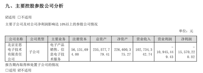 在產(chǎn)銷量都實(shí)現(xiàn)增長(zhǎng)的芯片類產(chǎn)品方面,子公司宏思電子的芯片類收入為9805.88萬(wàn)元,占該類產(chǎn)品收入的大部分。2023年度,宏思電子實(shí)現(xiàn)營(yíng)業(yè)收入1.03億元,但凈利潤(rùn)為-1557.02萬(wàn)元,出現(xiàn)虧損。