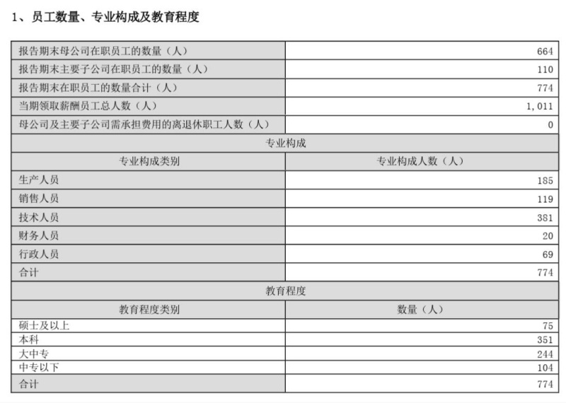 年報(bào)顯示,當(dāng)期領(lǐng)取薪酬員工總?cè)藬?shù)為1011人,但年末在職員工的數(shù)量合計(jì)為774人,兩者相差比較大,出現(xiàn)了較多員工離職的情況,這跟辭退福利增加對(duì)應(yīng),或是增加裁員所影響。上一年度(2022年),飛天誠(chéng)信的領(lǐng)取薪酬員工總?cè)藬?shù)為982人,年末在職員工的數(shù)量為956人,并沒有較大差距。