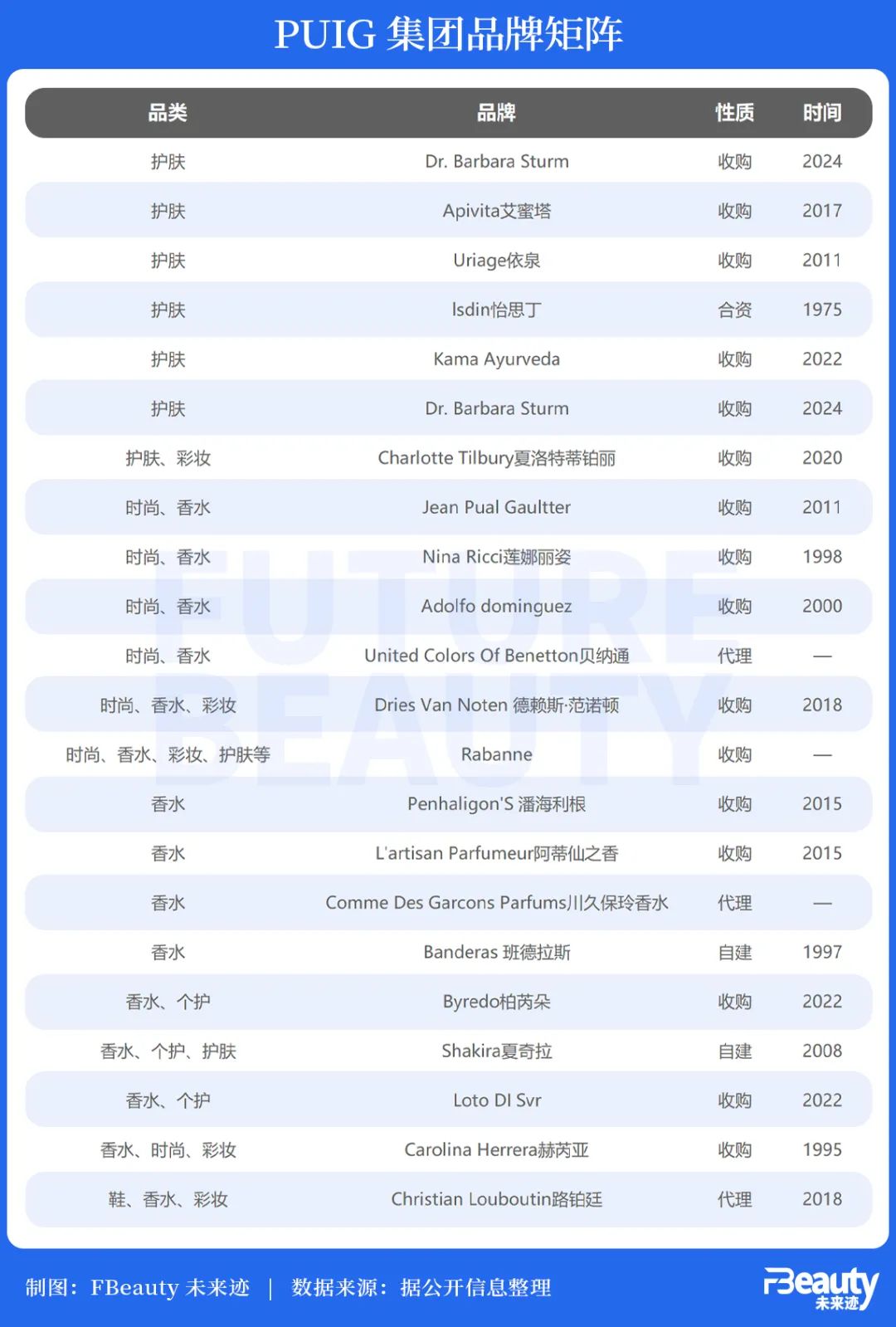 也是在近些年里,PUIG展開一系列收購活動,先后將彩妝師品牌Charlotte Tilbury、小眾高端香水Byredo、德國分子護膚品牌Dr. Barbara Sturm納入麾下。