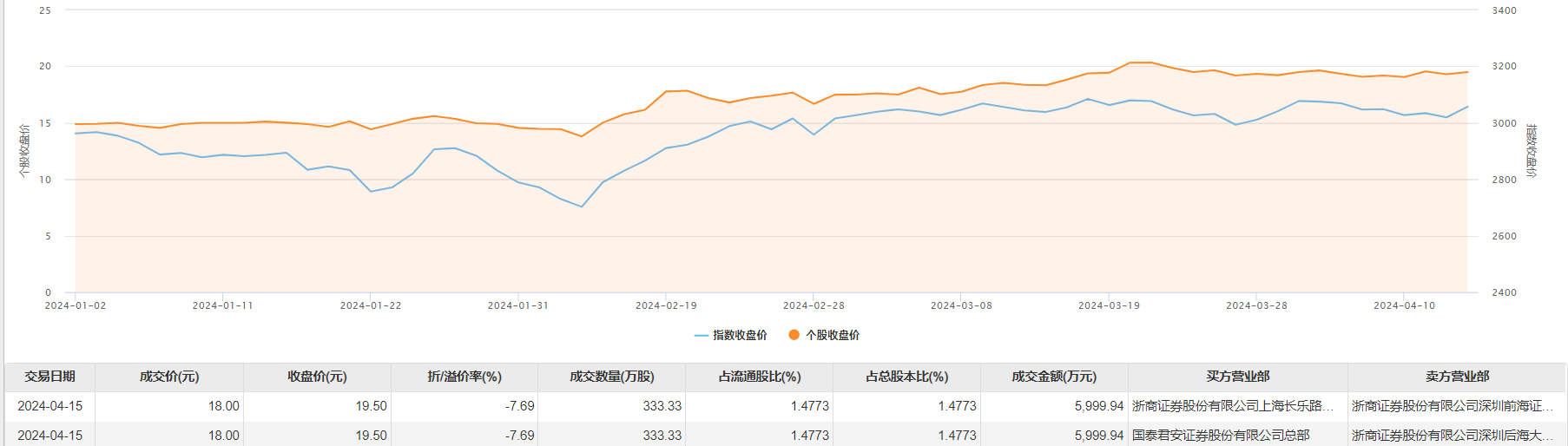 新華百貨4月15日大宗交易成交666.66萬(wàn)股,成交額1.2億元,占當(dāng)日總成交額的49.17%,成交價(jià)18元,較市場(chǎng)收盤價(jià)19.5元折價(jià)7.69%。