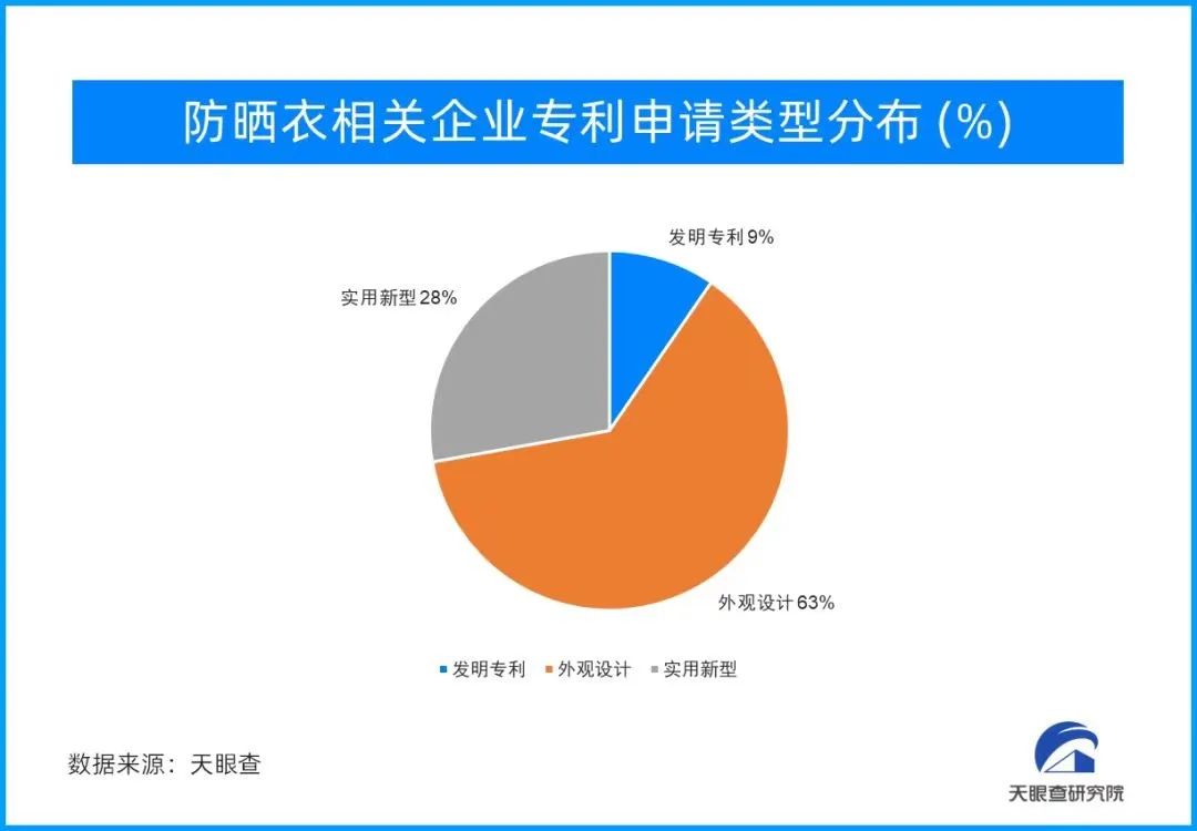 羊毛出在羊身上,大手筆的營銷投入,背后默默買單的還是消費者。與高溢價相對的,是企業(yè)在防曬科技研發(fā)商的低投入,在天眼查以“防曬衣”為關(guān)鍵詞進行專利搜索,其中“外觀設(shè)計”類的占比就占據(jù)了半壁江山,真正的創(chuàng)新屈指可數(shù)。
