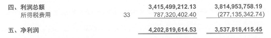 上文不是寫了凈利潤有42億元,利潤總額為何低于凈利潤?