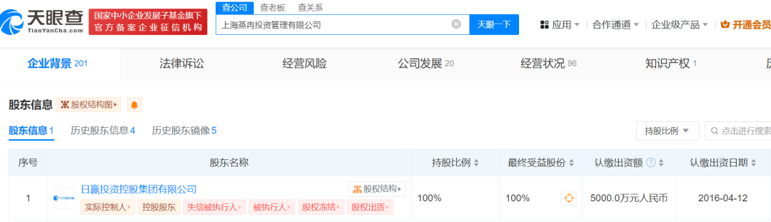 據(jù)“第一財經(jīng)”報道,有投資者提供的瑞豐達產(chǎn)品合同顯示,落款處的蓋章和簽名,分別是上海蒸冉投資管理有限公司(簡稱“蒸冉投資”)和孫偉。據(jù)天眼查顯示,蒸冉投資由日贏投資控股集團有限公司(簡稱“日贏投資”)100%持股。