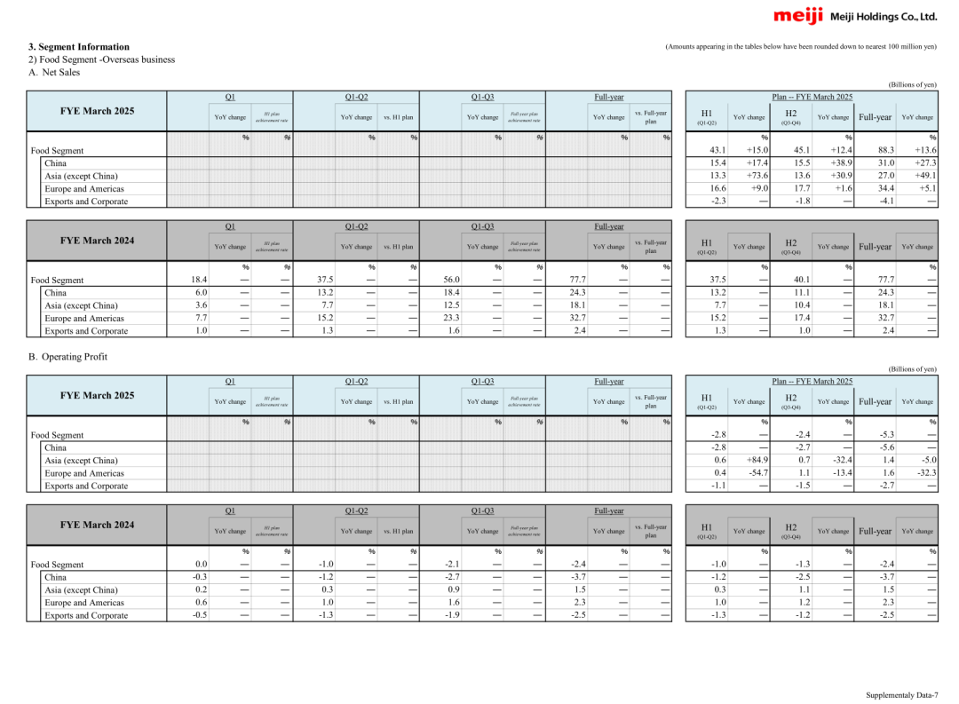 明治預(yù)計,截至2025年3月31日的2024財年,食品業(yè)務(wù)在中國市場的凈銷售額將達(dá)到310億日元,同比增長27.3%;而運(yùn)營利潤則預(yù)計同比下降5.6%。