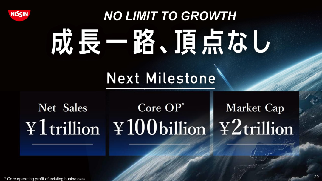 “我們的下一個里程碑是,凈銷售額達(dá)到1萬億日元,核心經(jīng)營溢利達(dá)到1000億日元,市值達(dá)到2萬億日元?!比涨逶跇I(yè)績資料中提出。