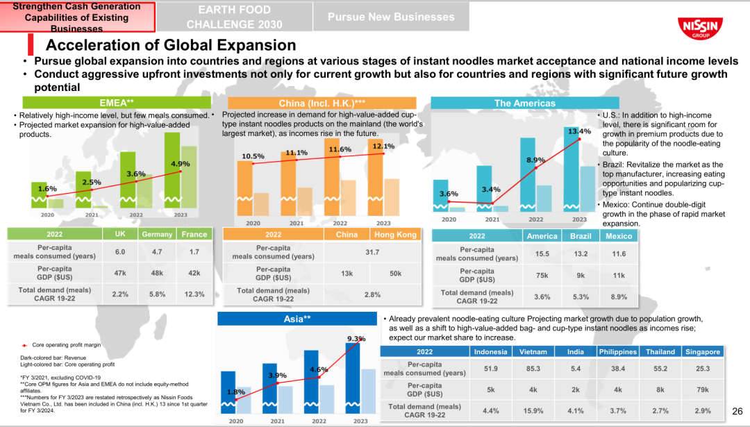在列出“主要增長驅(qū)動力”時,中國在其海外業(yè)務(wù)中被圈定為關(guān)鍵市場之一?!霸谥袊袌?,我們要推動支柱品牌合味道的發(fā)展,同時推動高附加值袋裝方便面收入增長。”日清表示。