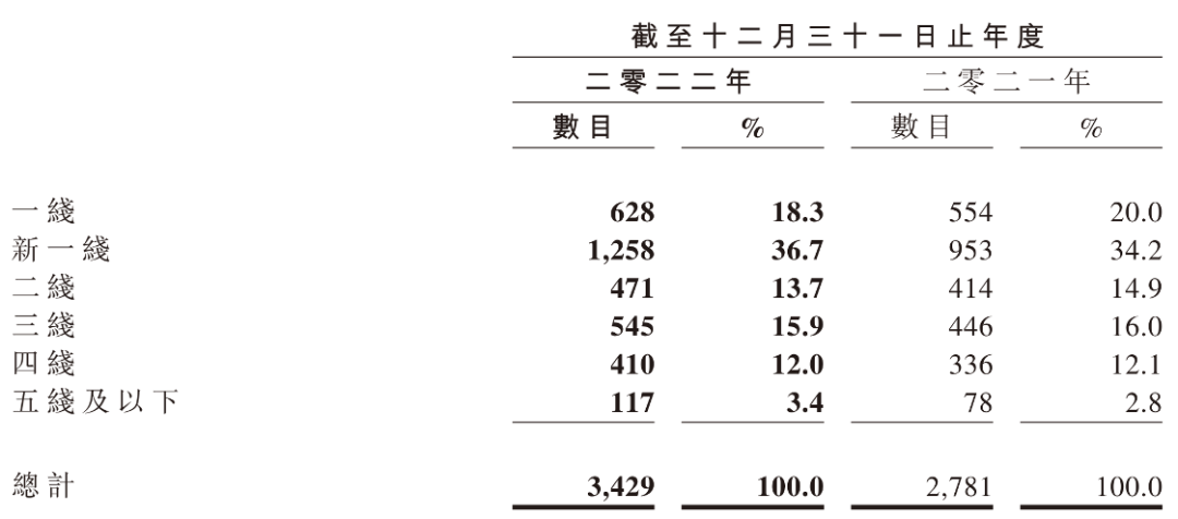 要知道,國(guó)內(nèi)的零售門店,想要突破萬(wàn)家是一件非常難的事情。全國(guó)區(qū)市級(jí)333家,縣級(jí)2843家,這意味著一二線城市的容量是3000家左右,縣級(jí)也就是下沉市場(chǎng)差不多每個(gè)縣3個(gè)門店的話能有1萬(wàn)家的容量。