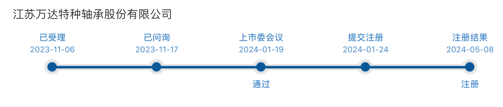萬(wàn)達(dá)軸承在2023年1月12日于新三板掛牌,10個(gè)月左右的時(shí)間便進(jìn)行申報(bào),北交所的受理時(shí)間是2023年11月6日,2024年1月19日通過北交所上市委的審議,2024年1月24日提交注冊(cè),5月8日注冊(cè)完成,5月10日批復(fù)落地。如今更是在5月21日進(jìn)行申購(gòu),萬(wàn)達(dá)軸承可謂是“兵貴神速”。據(jù)悉萬(wàn)達(dá)軸承擬募1.037億元。