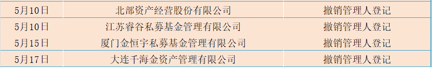 今年以來,監(jiān)管部門還持續(xù)加強(qiáng)對(duì)私募基金管理人的監(jiān)管,私募基金管理人優(yōu)勝劣汰加速,不合規(guī)的管理人持續(xù)出清。中基協(xié)官網(wǎng)顯示,截至5月14日,今年以來已有769家私募基金管理人注銷。從注銷類型來看,“協(xié)會(huì)注銷”類型達(dá)481家,“主動(dòng)注銷”類型為181家,“依公告注銷”有10家,“12個(gè)月無在管注銷”為97家。