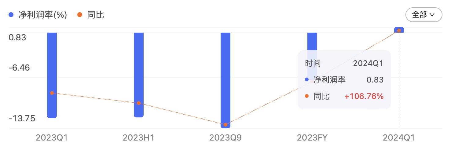 圖/賽力斯2024 Q1財報-凈利潤率 來源/百度股市通