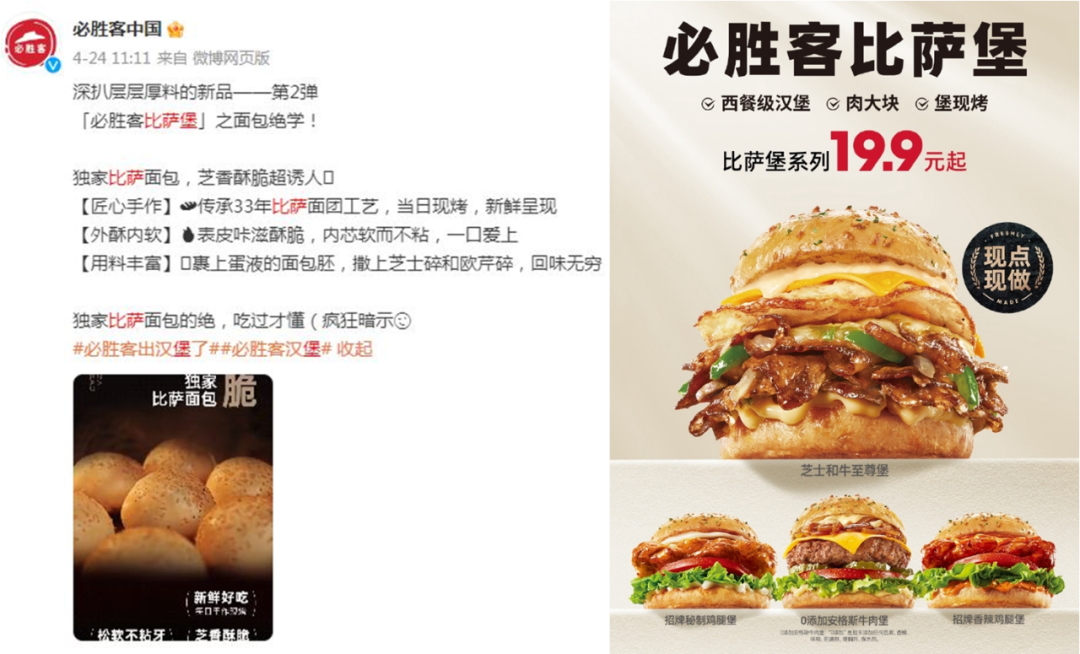 上個(gè)月,必勝客上線了原名為“比薩堡”的漢堡新品。該產(chǎn)品賣點(diǎn)為“用披薩面團(tuán)做的面包”,而且都是“現(xiàn)點(diǎn)現(xiàn)做”。當(dāng)一個(gè)專業(yè)做披薩的開始做漢堡,我們就應(yīng)該知道,這一次是試圖做些大動(dòng)作。