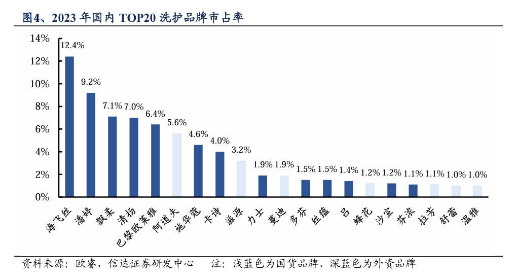目前,國(guó)內(nèi)洗護(hù)市場(chǎng),外資品牌占據(jù)絕大部分市場(chǎng)份額,其中,美國(guó)、法國(guó)品牌市占率更是名列前茅,本土品牌話語(yǔ)權(quán)并不大。