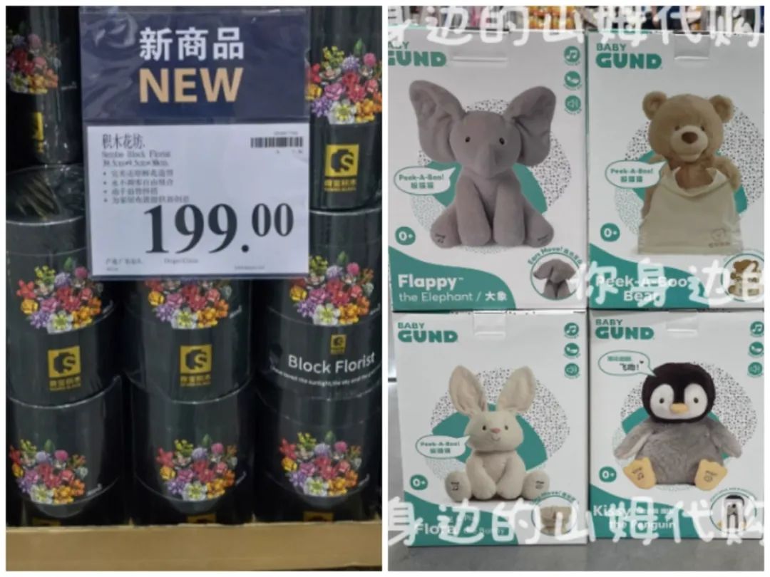 第三,除了上述品類(lèi),山姆代購(gòu)店的玩具也賣(mài)得很好。這些玩具普遍是大人、小孩都能玩的積木、安撫玩偶,主打一個(gè)精細(xì)化養(yǎng)娃和成年人的小確幸都拿捏。