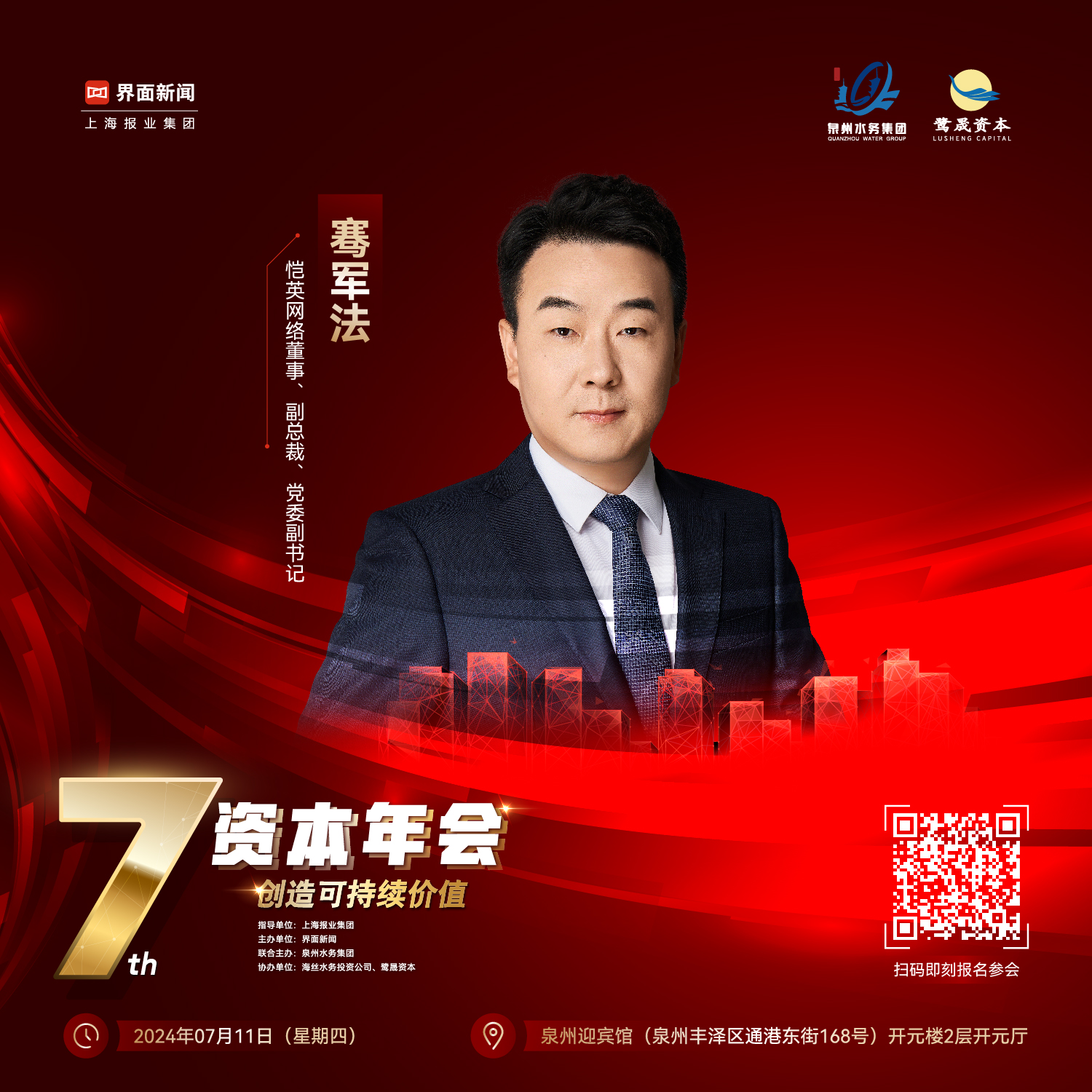 由上海報(bào)業(yè)集團(tuán)作為指導(dǎo)單位,界面新聞主辦、泉州水務(wù)集團(tuán)有限公司聯(lián)合主辦,泉州海絲水務(wù)投資有限責(zé)任公司、泉州鷺晟私募基金管理有限公司作為協(xié)辦單位【2024資本年會(huì)】確認(rèn)將于7月11日(星期四)在泉州迎賓館(泉州豐澤區(qū)通港東街168號(hào))舉行。(點(diǎn)擊“2024資本年會(huì)”即刻鎖定年會(huì)參會(huì)名額)