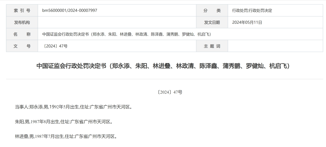 證監(jiān)會(huì)的處罰,也主要集中在鄭永添身上,其一人就承擔(dān)了1827.77萬(wàn)元,林進(jìn)疊、林政清、朱陽(yáng)等人次之。