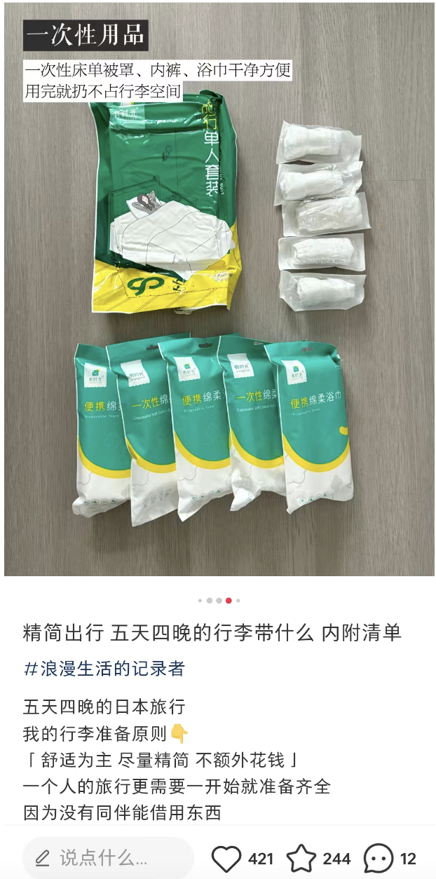 旅游市場的火爆在某種程度上帶動了一次性用品的增長是市場的共識。外出旅游中,這屆網(wǎng)友都樂于分享過程中自己的攻略和心得,尤其在個人衛(wèi)生方面,更是關(guān)注的焦點。